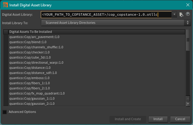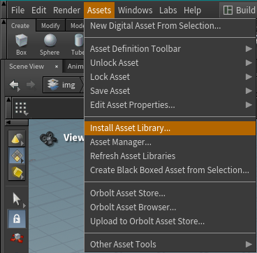 - In Houdini, choose Assets > Install Asset Library from the main menu…