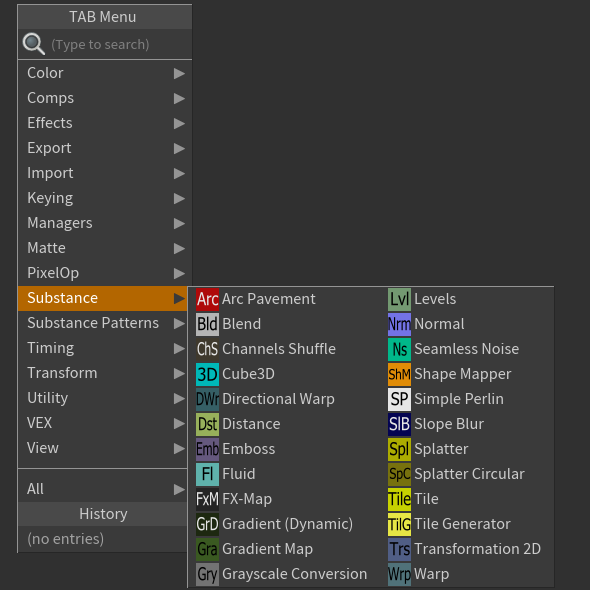 After installation, you can find all the plugin nodes under the Substance submenu in the COP2 context.